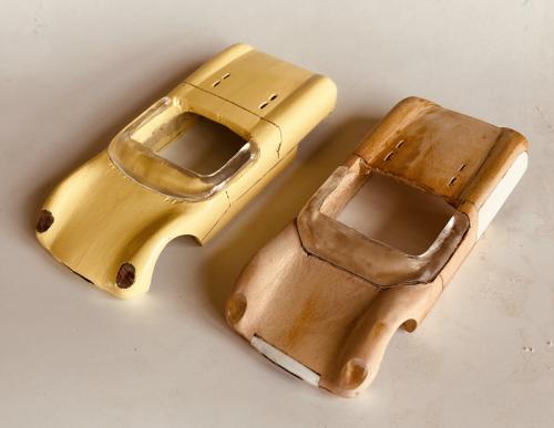 I like to get the headlight of perplex installed early, they are also part of the shape. This is a very early phase, it is still far too tall...