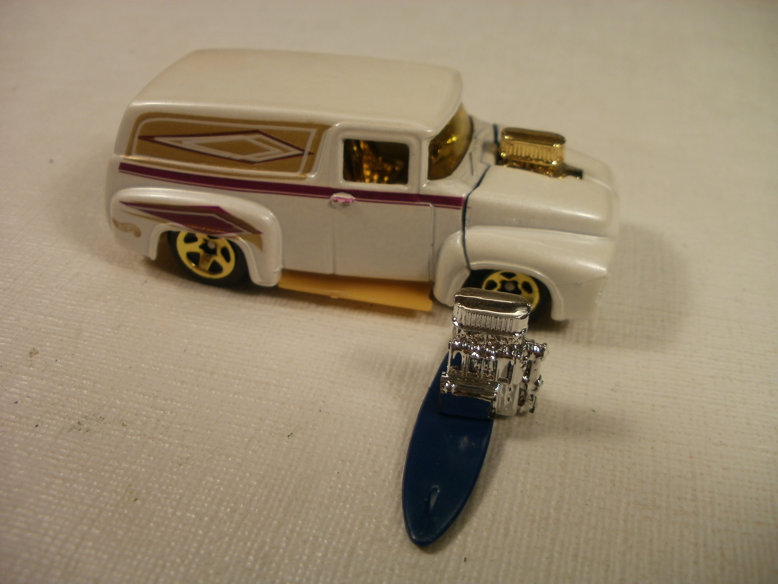 The 56-Ford panel truck comes with a really nice air cleaner mounted on a blower in both chrome, and gold chrome.