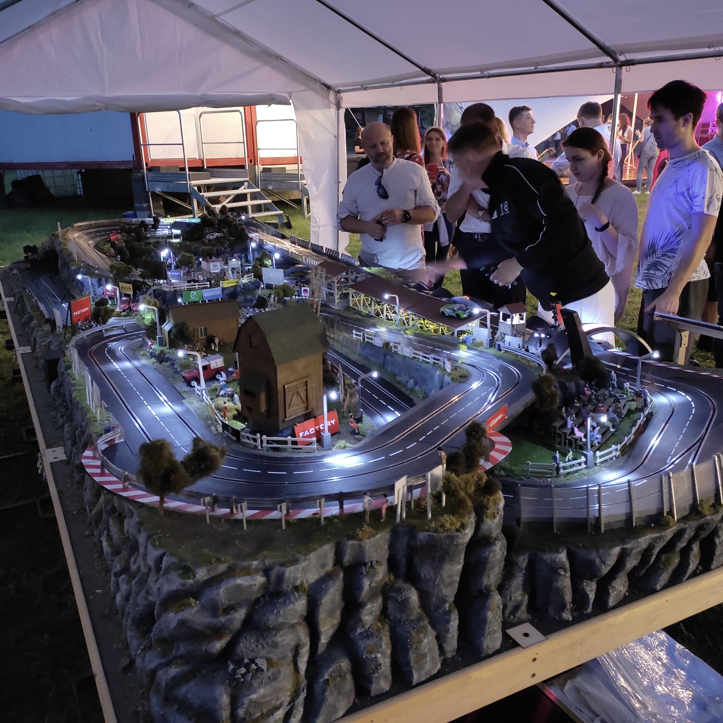 we have for sale our track, which we built in 2020. Since then the track has been used for car events and trade shows. In total about 15 times. The track is prepared for simple montage / demontage and transport. It consists of four parts and covers. It fits into a standard van.