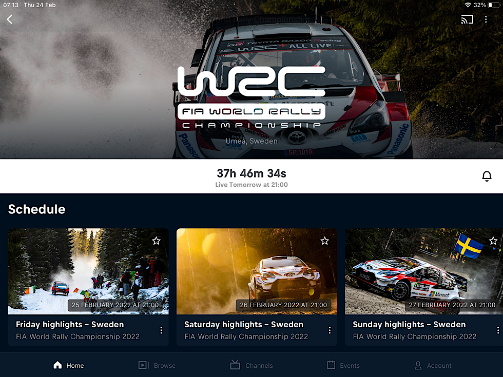 The full 30-minute WRC highlights are available each evening from 9pm UK time. The Red Bull TV app is available on most platforms, including Android, iOS and Fire - plus PlayStations, smart TVs, Amazon TV Firestick etc.