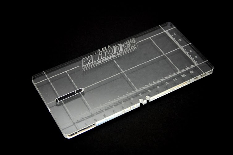 ... is good to have - it's very flat and you can see through from the underside to find out what's going on. That Mitoos one is the cheapest Pendles sell here. Mine is a simple 9x17cm piece of 6mm thick clear acrylic - with a 4cm slot cut into the front short side and all the edges smoothed off (they can be rather sharp!). Here it is in action...