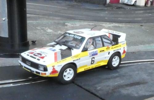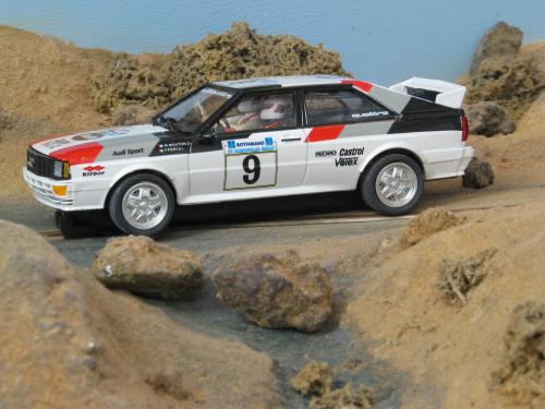 Fly Audi Quattro A1 Ivory Coast 1982 accident, losing the WRC-title that year. Scalextric Audi Quattro E2 Ulster Rally 1985, turbo failure.