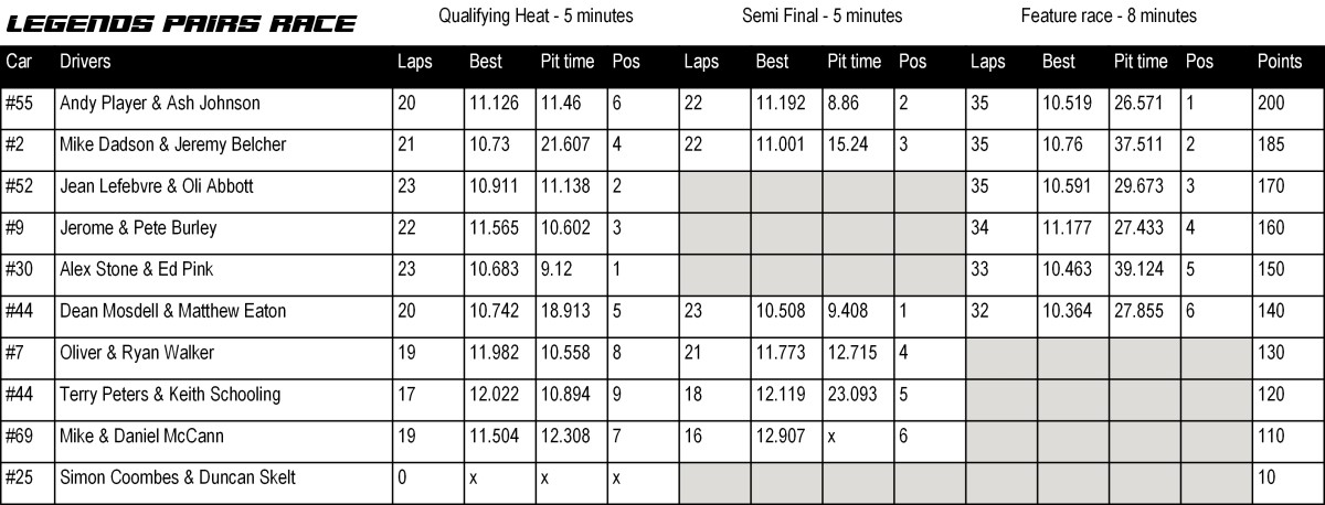 The top three – Andy & Ash, Mike & Jeremy and Jean & Oli – all finished on the same lap, with Jerome and Pete a lap behind. That late pit stop drama dropped Alex and Ed to fifth, with Dean and Matthew just behind them. It was a great debut for these super little cars – although drivers will need to go away to tweak rear width, weight and tidy up their braids… we had two big shorts that interrupted practice and the second qualifying heat, but it was worth it. And that didn’t stop us finishing on time.
