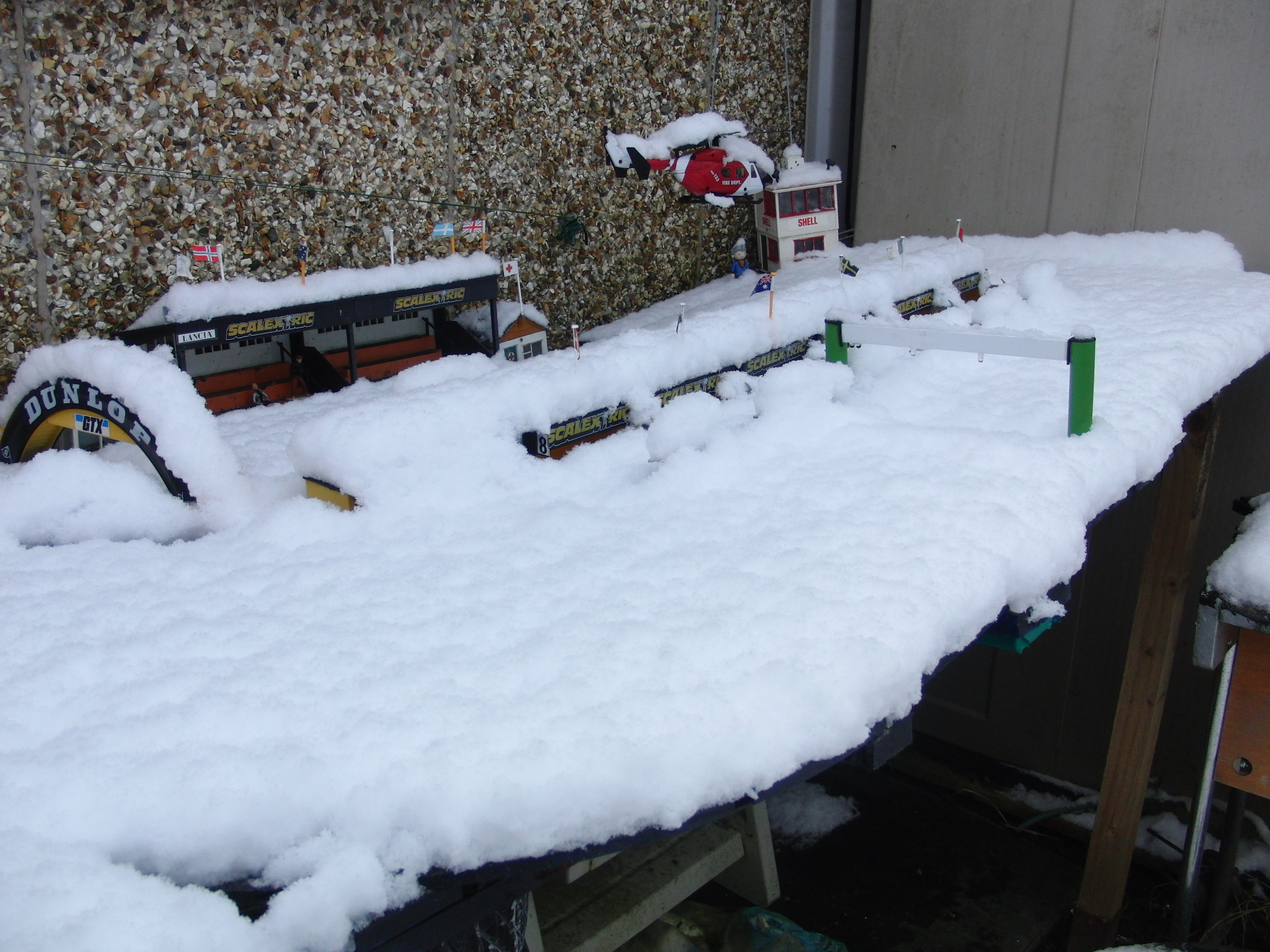 In its current form the layout is about 13 metres in length and it has a single cross-over section so one lap is just over 26 metres and takes about 15 seconds. Driving in the rain is good fun, light snow can be fun also!