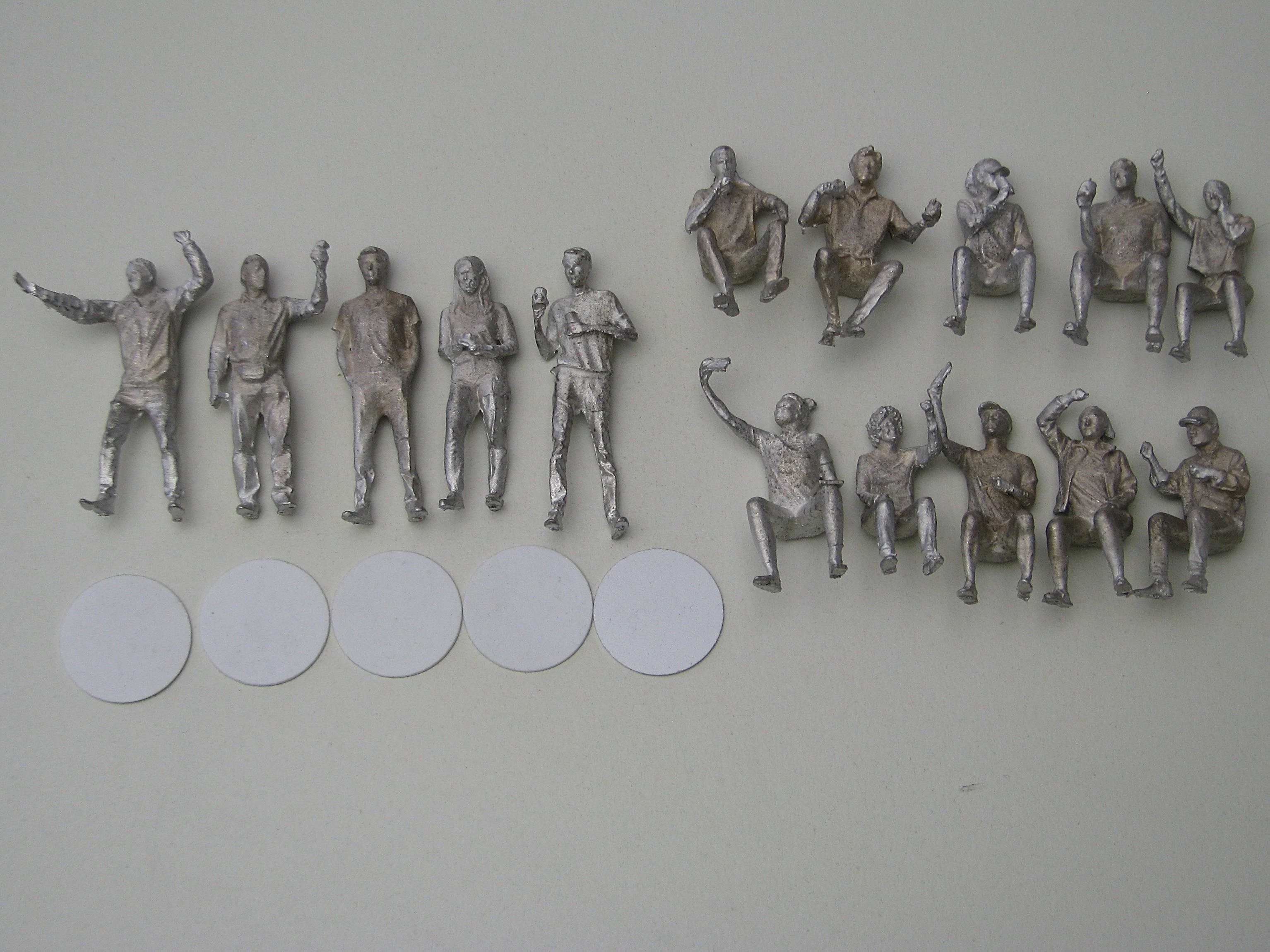 Diorama Pack 3 Spectator Set. A close-up of the fifteen metal spectator figures.