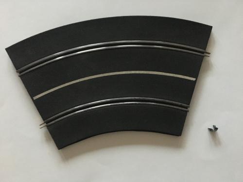 Not tried these on slot-car track but have used them a lot for clipping sheets of paper together.  The larger sizes would be worth trying. You need the special tool to fit them but can be removed in the same manner as the original Scalextric clips.