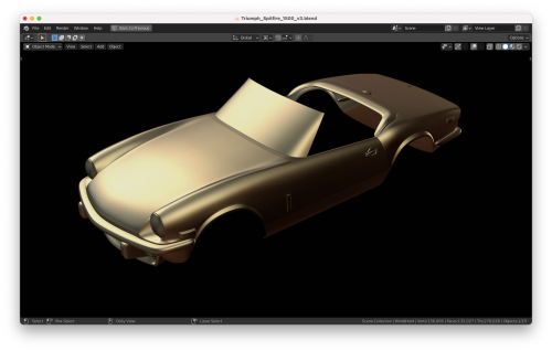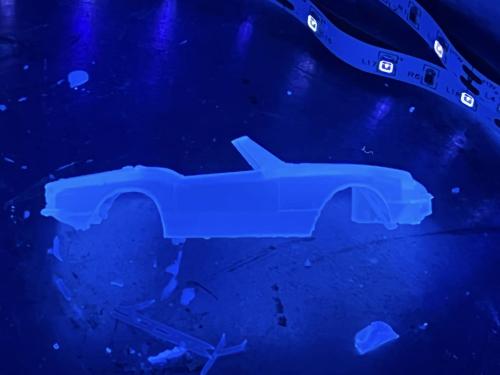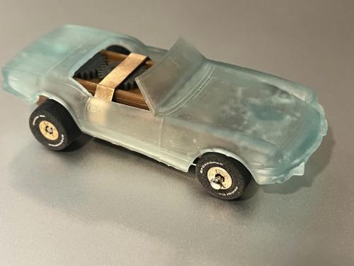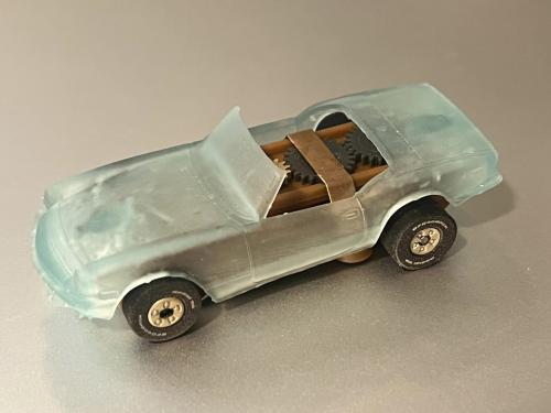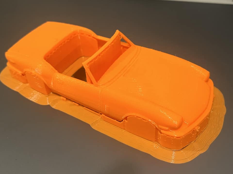 First test prints of the 3D model Spitfire 1500 I’ve been working on. There will also be a GT6 Mk3 and Spitty with the rag top up. The translucent one is in resin at 1/64 scale (yes, it fits a T-Jet), and the orange one is a filament print at 1/32 scale just to test it out. Man... that big one would take a TON of Bondo to smooth that thing out! Still have to knock the print supports off the orange. It gives me an idea for a rally variant with skirt package. The final bodies will be printed in the much smoother resin and fit with a proper chassis and scale wheels that tuck inside the body... not into the Fray car look.