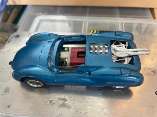 With my limited skills I decided to have a go at this version of the car. The original version from Monogram in the 60's had the exhausts exiting next to the carbs.