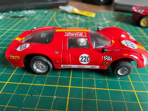 I regret paying so much for a car that has never been any good. I hate the wheels and tyres - which keep parting company no matter how many times I try and glue them on. I've tried the grey sticky ones but they are just as bad. The guide is wierd and has been replaced with a SlotiT wooden track job. The motor is OK but is now in the ProSlot Toyota which suits it better. It's quite nippy on the few occasions I run it but then a tyre will fall off. Not as fast as the Alfas though and I get three of those for the price I paid for the McLaren.