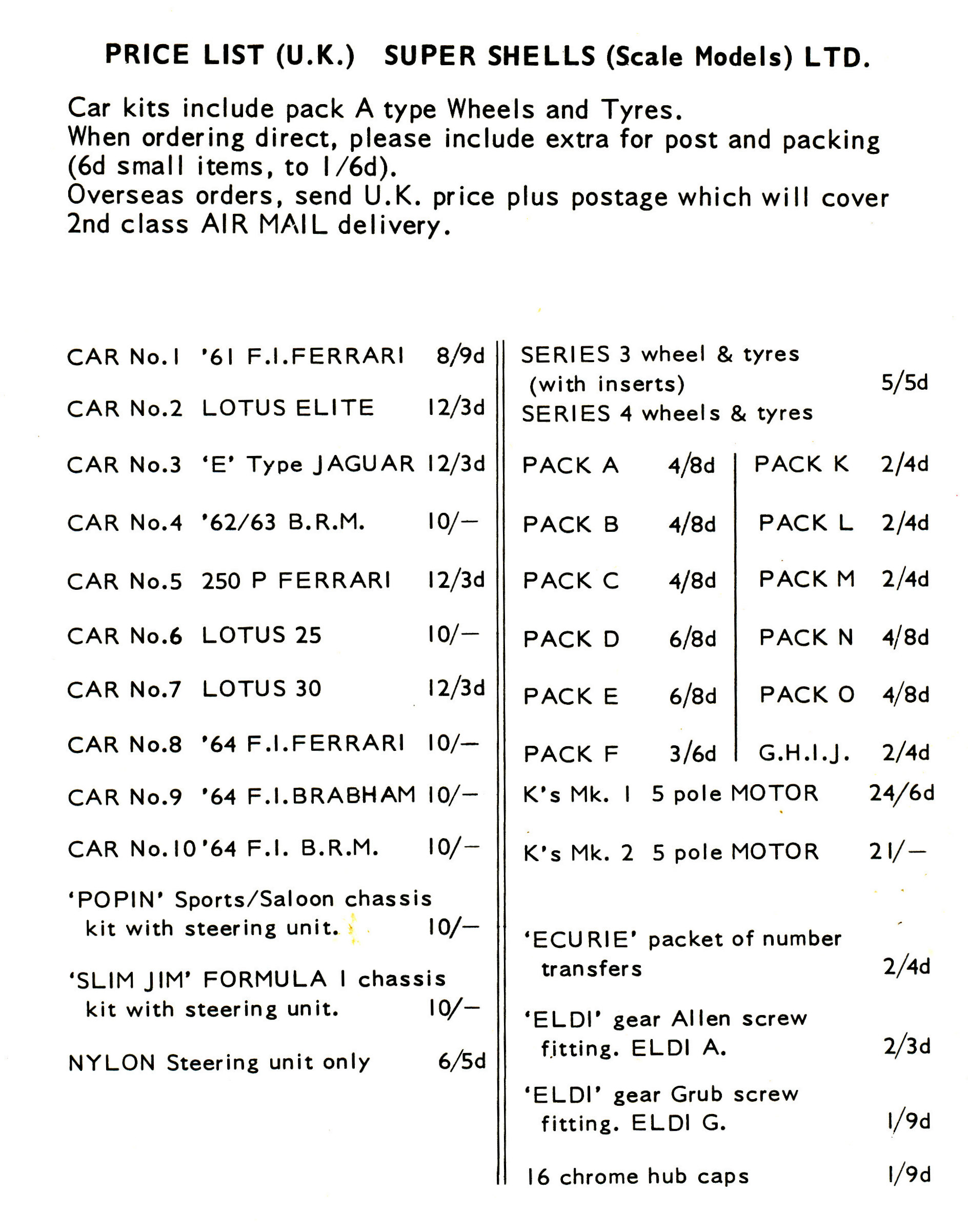 Attached 6 pages of the approx1966 Super Shells catalogue and price list