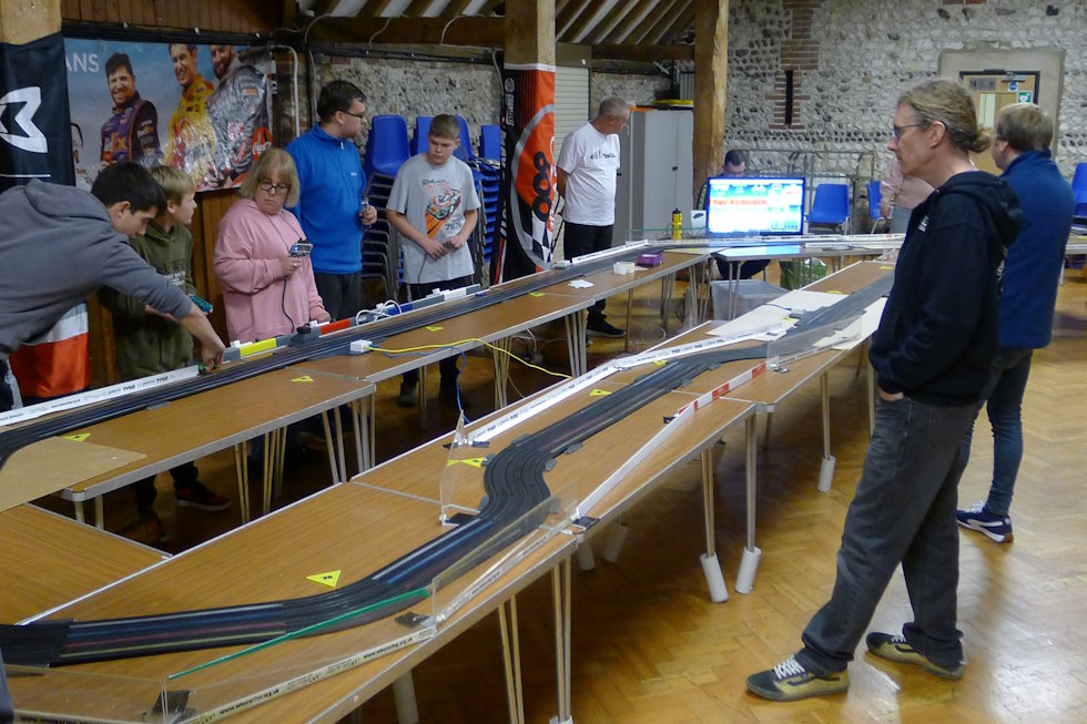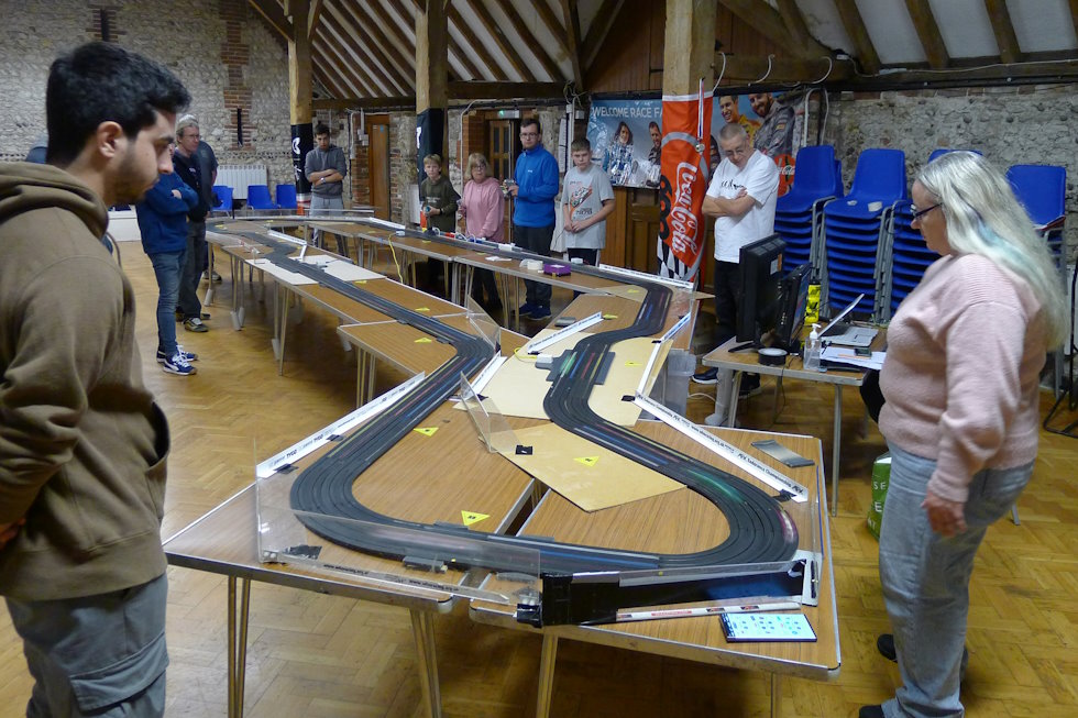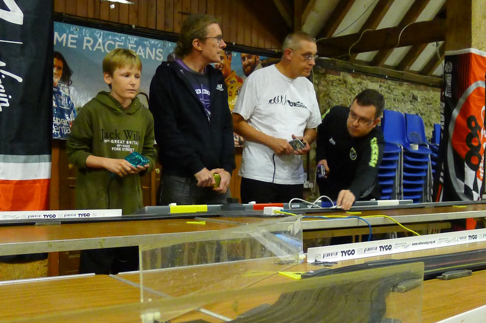 The heats were fast and furious, the track catching most racers out at some point. One incident that I'd prefer to forget, but everyone else insisted made the race report, was my first heat... Three cars fired off the start line towards the first corner - but the car in yellow lane ambled backwards down the straight. The lesson is to make sure you do at least one lap of practice. And I would regret that 30-second interlude swapping round the rear axle.
