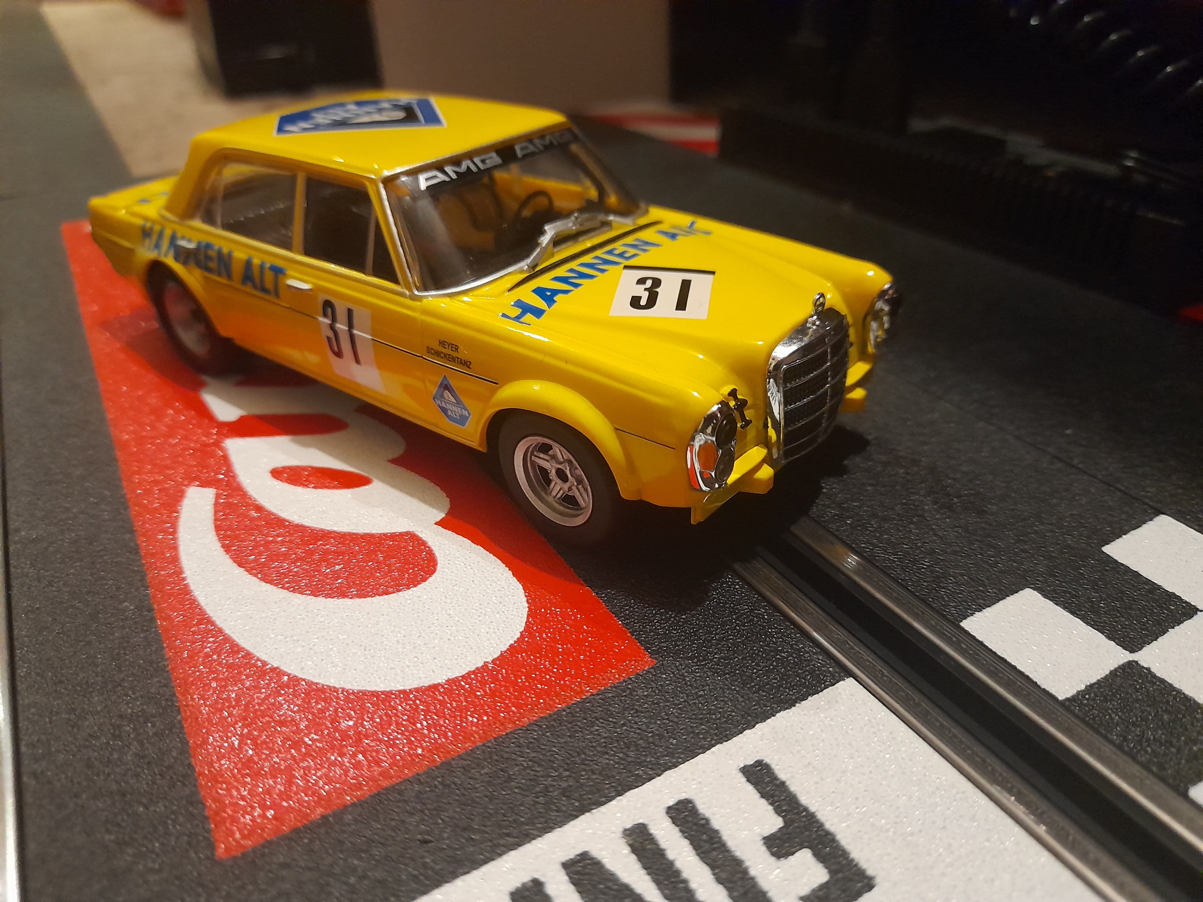 I've taken the magnets out. I've swapped the rear axle for a Slot.it Carrera DTM type replacement kit but with WASP tyres which are slightly bulkier than the Slot.it ones supplied. I've used the original wheel inserts cut down to fit inside the new alu ones.