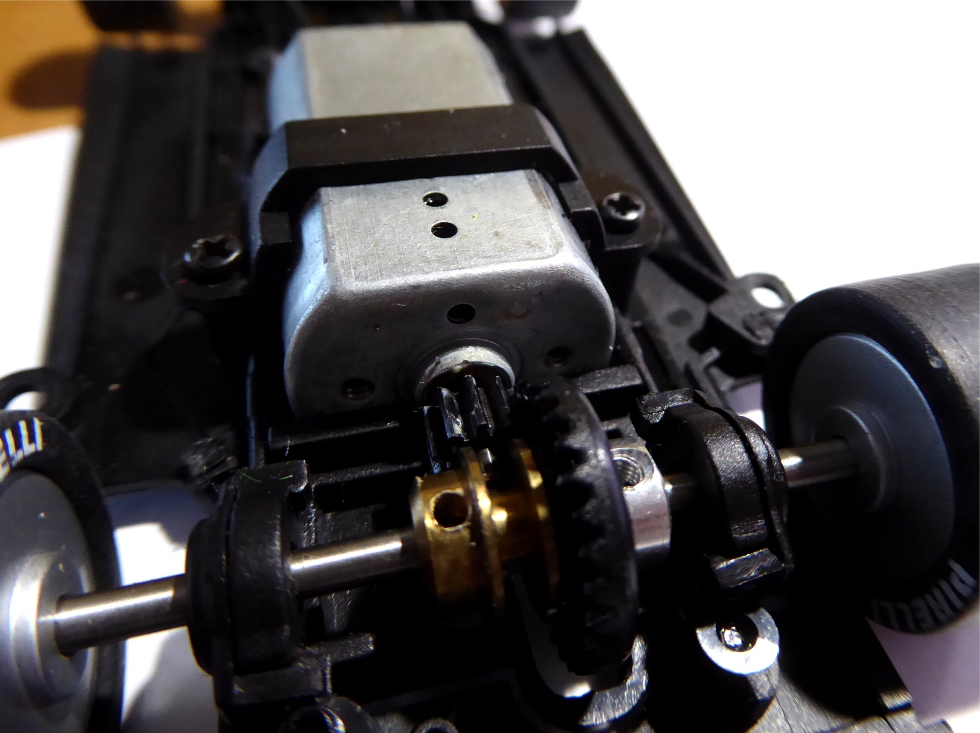 There are a third and fourth small hole on the top surface under the hold-down bracket and three motor securing holes at the pinion end, not four as I thought.