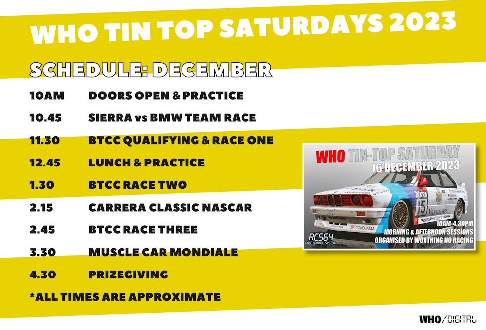 Our final action of the year at the Barn is the second of a pair of Tin Top Saturdays on 16 December. By the end of the day, we'll have crowned our 2023 WHO BTCC champion and - hopefully - had a cracking six and a half hours of saloon car racing, mince pie eating and Christmas jumper wearing.