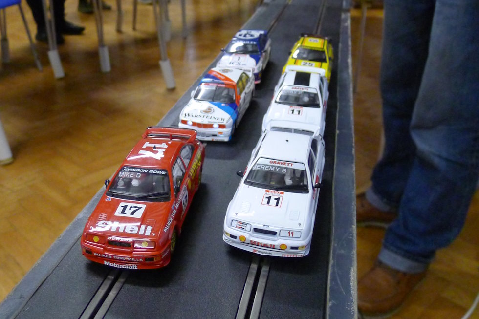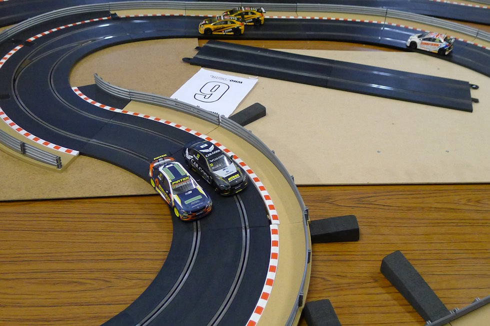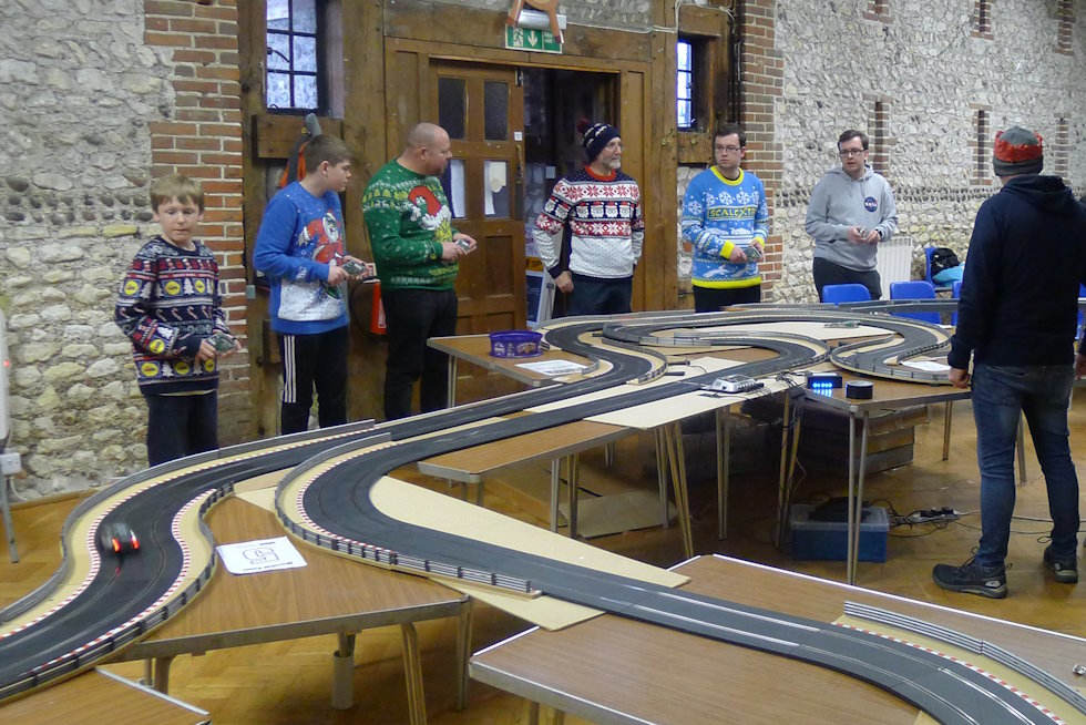 Racing on  Mike's NerdBarnRing layout has become a bit of a pre-Christmas tradition. It's a great Scalextric digital track with lots of overtaking opportunities...