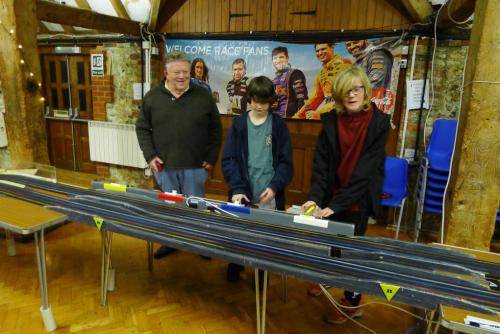 This one started with Dylan off at the first corner and Kevin de-slotting at the chicane. However, Alex's rapid marshalling - he'd had plenty of practice through the heats - meant that Kevin's red club car just led Ethan's white club car through the line after lap one...
