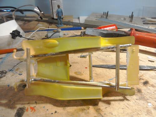 Fitted a scaly rear axle and wheels for now ,soldered in the motor mount .Need the back mount for the motor and a bit to hold the slot guide ,and body fixing points then finish the body