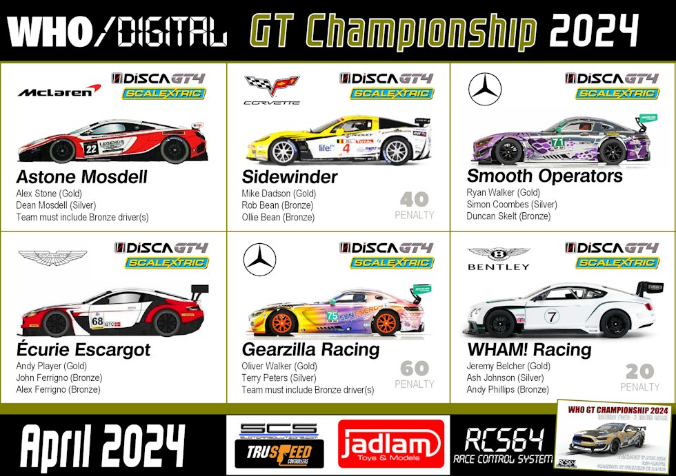 An hour gone and the drivers changed again - Mike D was driving for Sidewinder and Pete for Astone Mosdell, Mike Mc back on for WHAM!, Mark for Smooth Ops, Stephen for Gearzilla and Andy for Écurie Escargot...