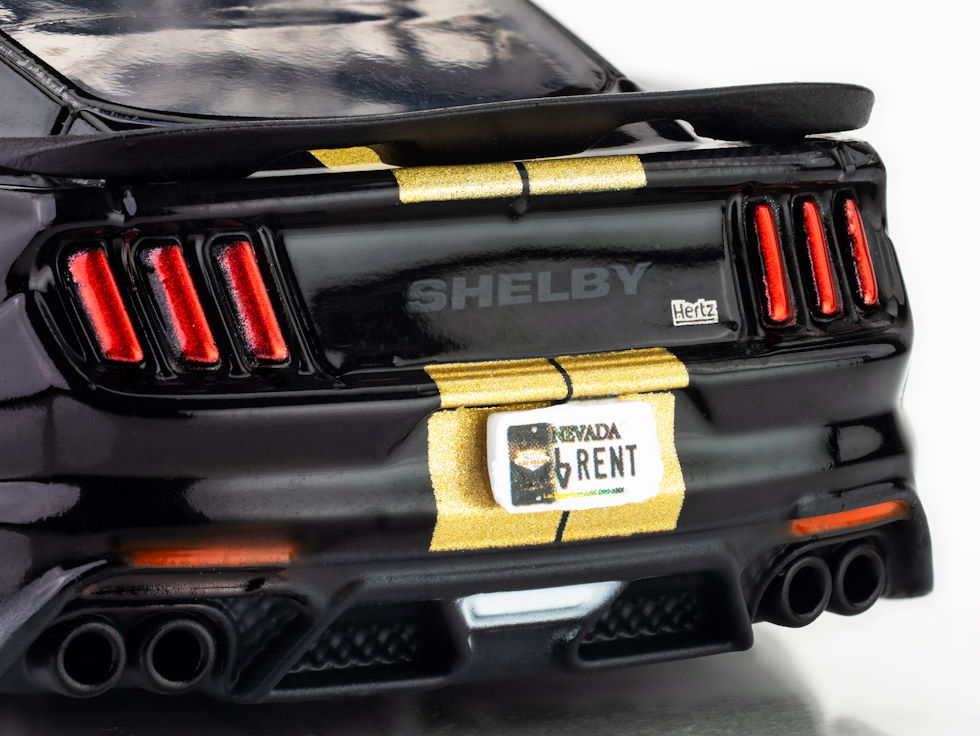 The AFX model recreates the GT500H as an HO slot car, featuring the iconic black and gold livery plus tiny Hertz and Shelby decals...