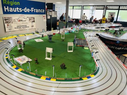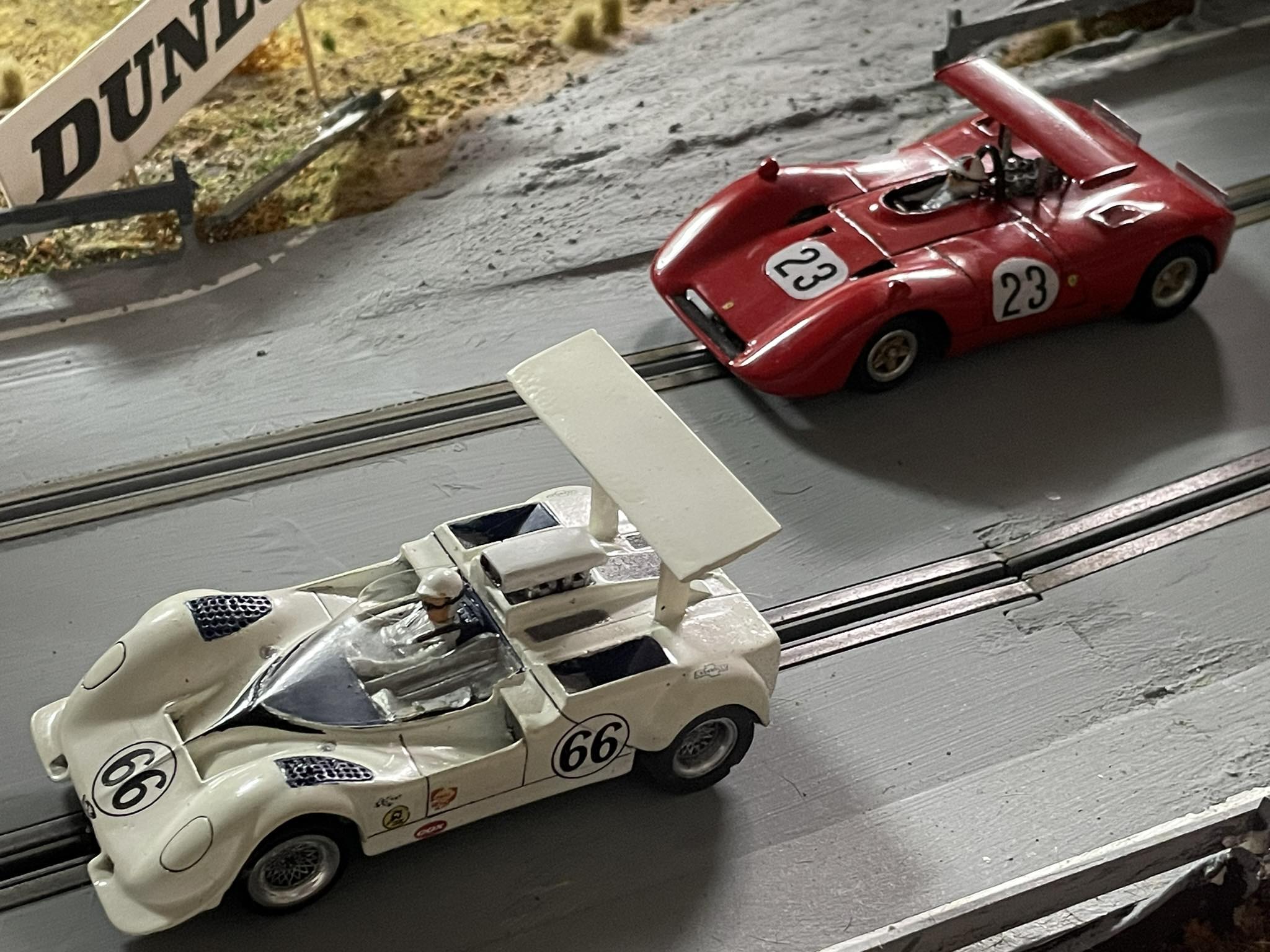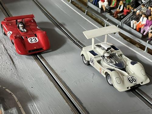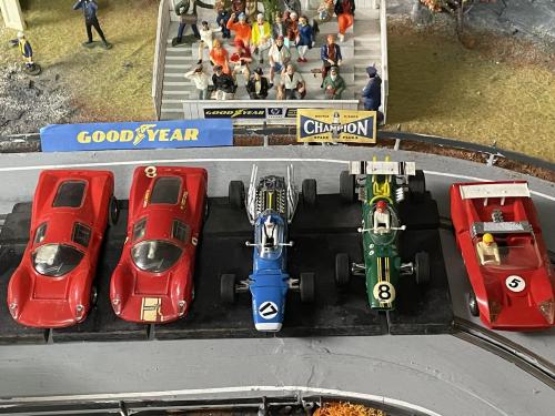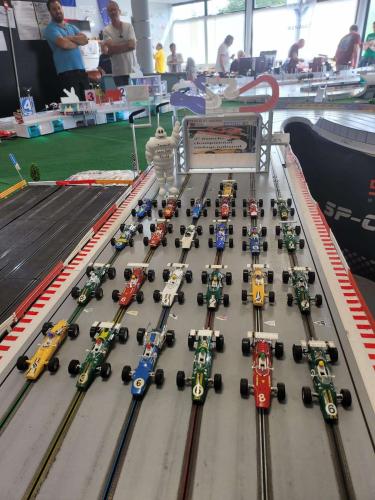 It is 2 races with Scalextric cars - 1 Class using the clamshell cars and one with powersledge. Then 2 classes - open 1/32nd cars - vintage prior to 72.