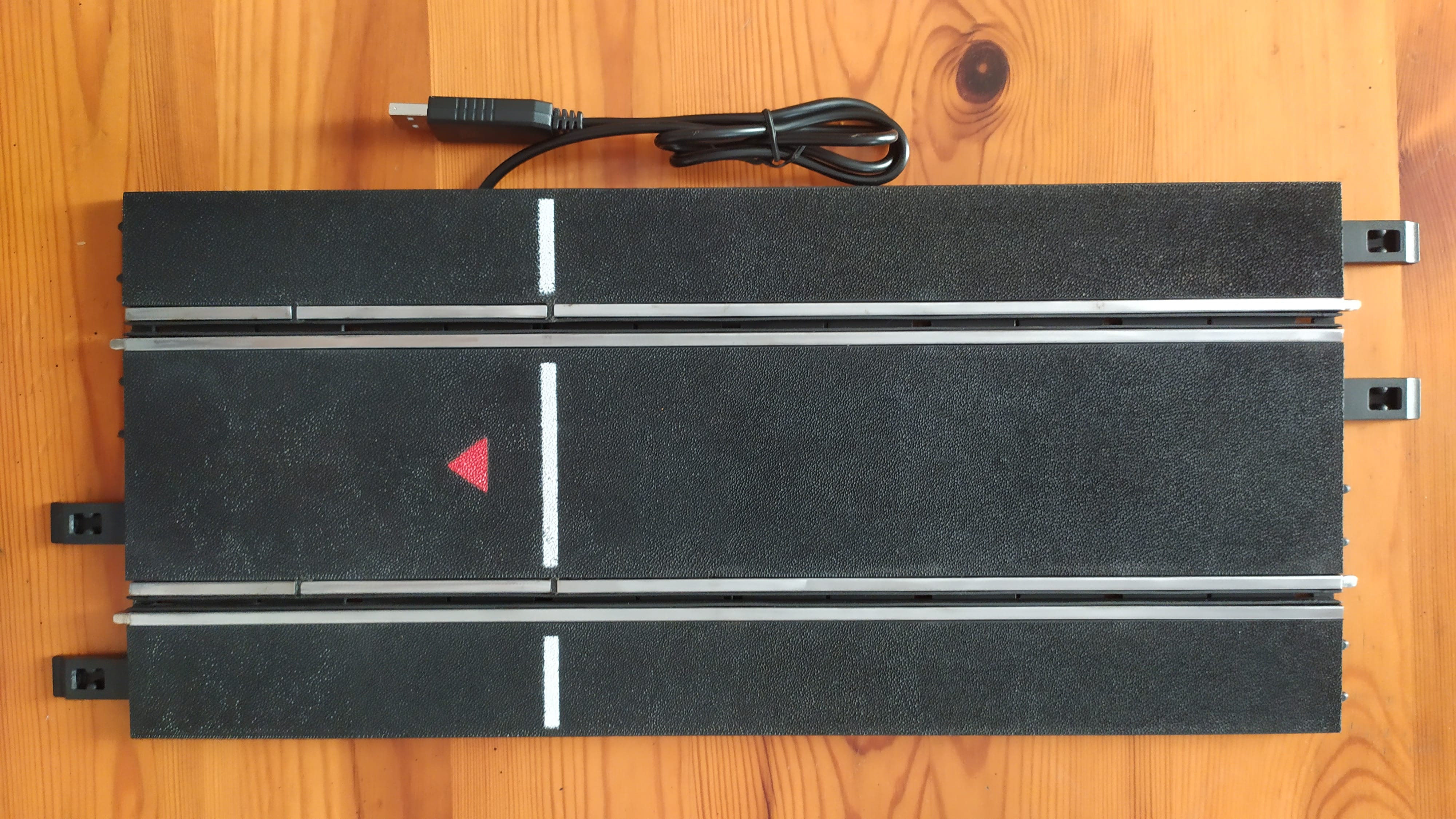 Hand made, modified Ninco 40 cm. rail with added sensors, electronic new board and USB cable.