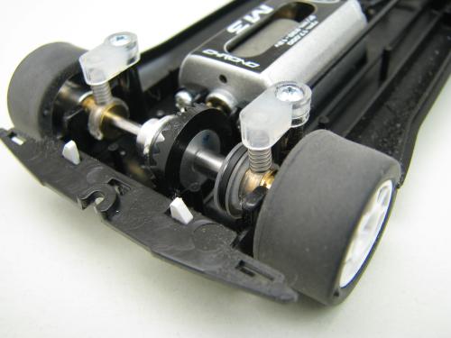 The inliner 17000 rpm 230 grcm M3/N motor drives the sprung rear axle. The sprung front axle is driven by pulleys and a belt.