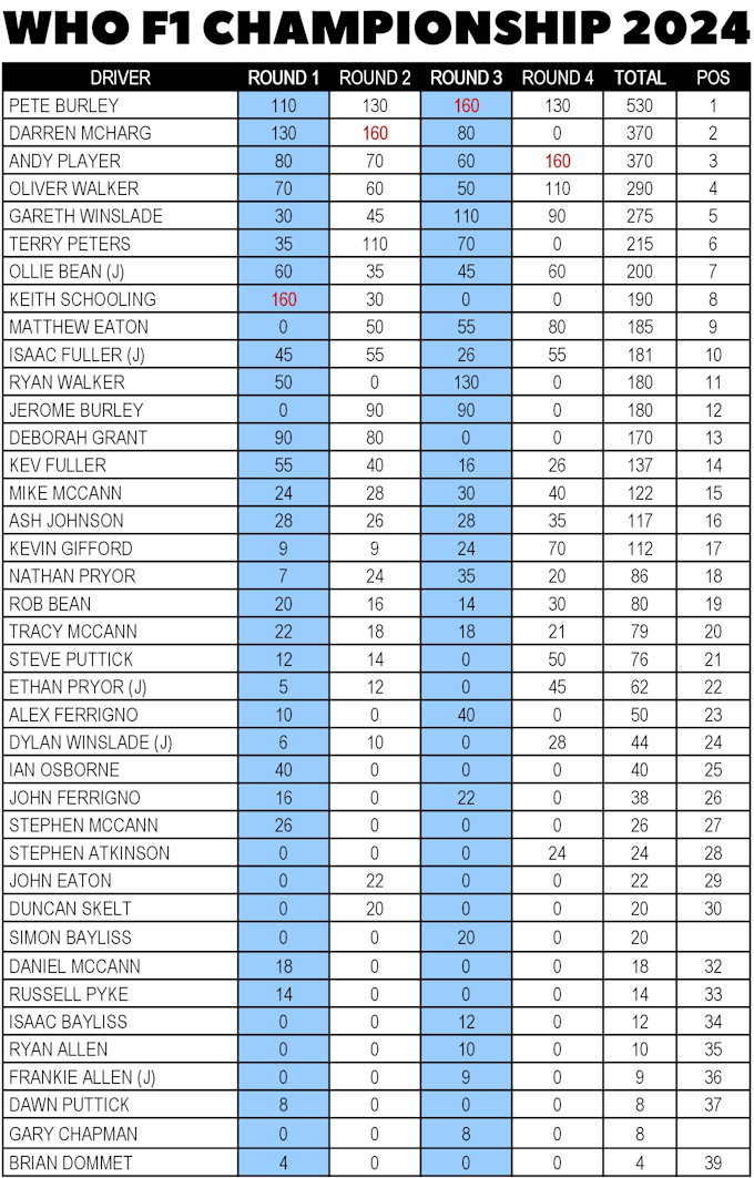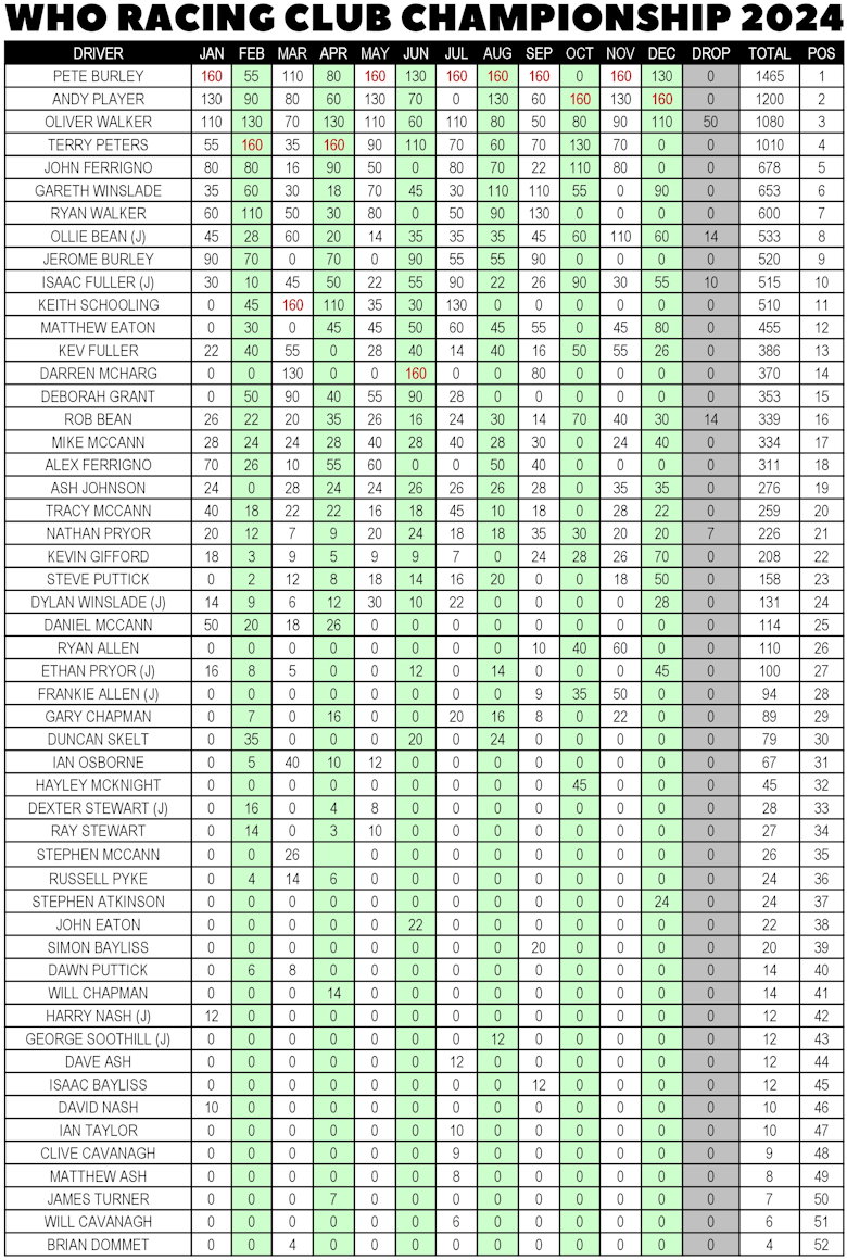 All twelve HO rounds are now complete, with Pete clinching his first WHO club title, Ollie his second junior crown...