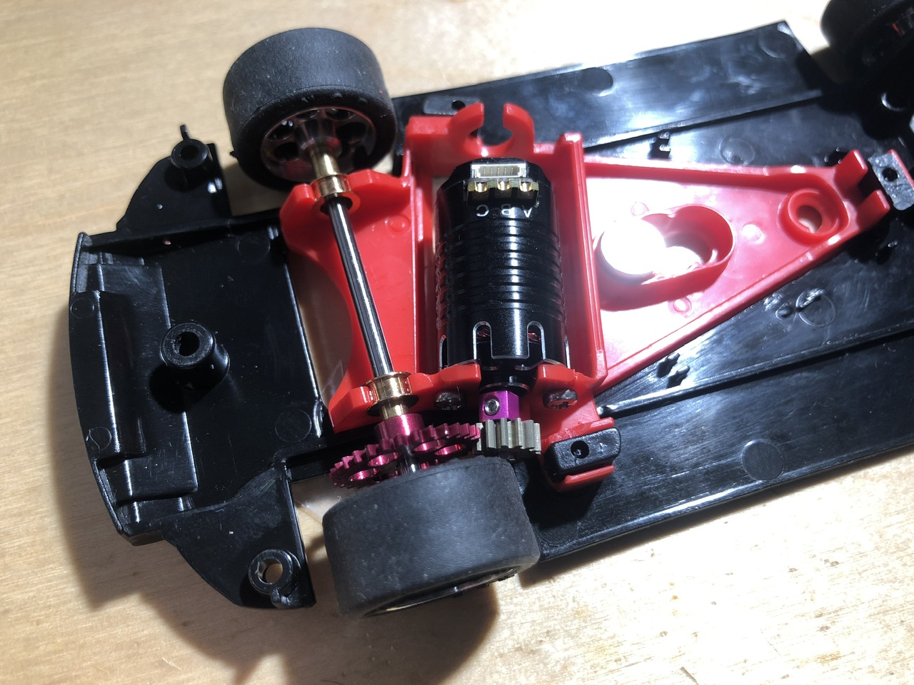 In my previous experiments a few years back I used sensorless brushless motors and a simple controller which could be driven by a standard digital decoder motor PWM signal. It drove but had no brakes. At that time I used a slot.it motor pod and a PCR chassis.