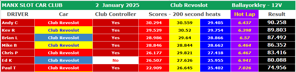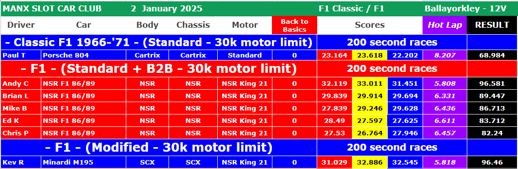 Race report - 2nd January 2025 - Club Revoslots followed by F1