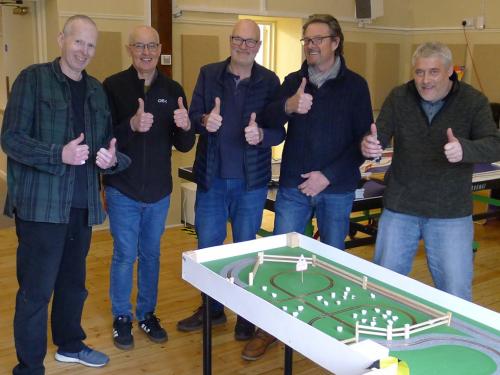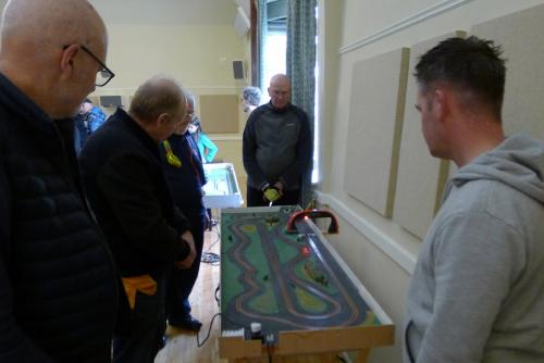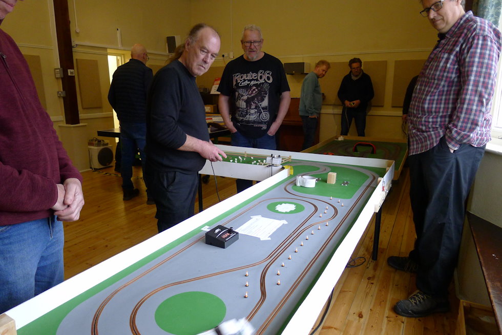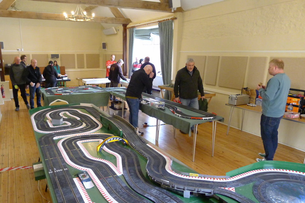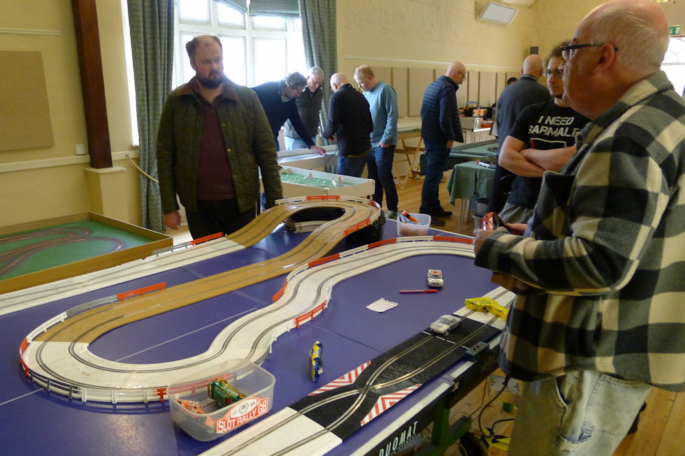 After two hours of dual-carriageway and 15 minutes of country lanes, five intrepid WHO racers - Phil, Mike D, Jeremy, Terry and Andy - made it to the Ramsden Memorial Hall to be greeted by the Slot Rally GB crew of Phil, Seb and Alan, plus the smell of sizzling sausages and bacon...
