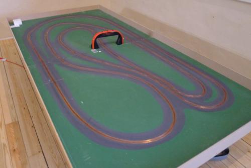Created during the pandemic, this L-shaped stage contains lots of driving challenges with the option (not used today) of different power and braking profiles on several different zones (eg no brakes on the green areas, lowered voltage on the textured grey areas etc). It's a brilliantly thought-out and delightfully executed slot rally stage...