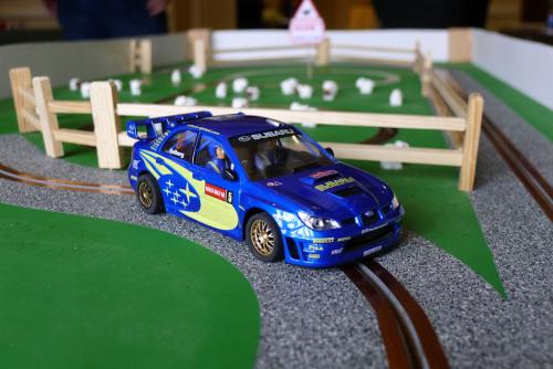 My SCX Suzuki was fun through the stage and the Ninco Porsche pretty quick. However, I had a disaster with the Subaru - a front wheel shed early and the rest of the axle following a lap or two late. Thankfully Mike had packed some superglue.