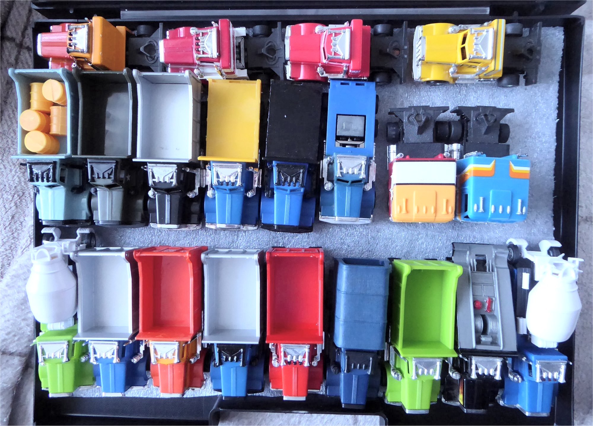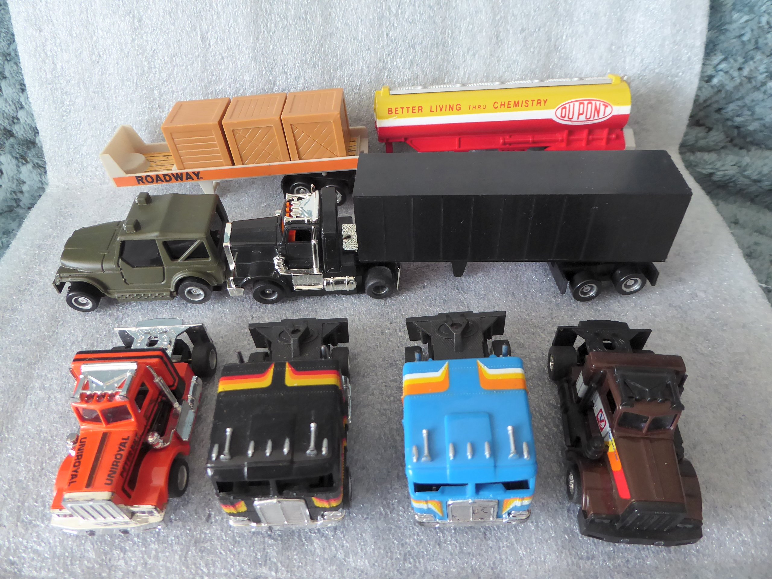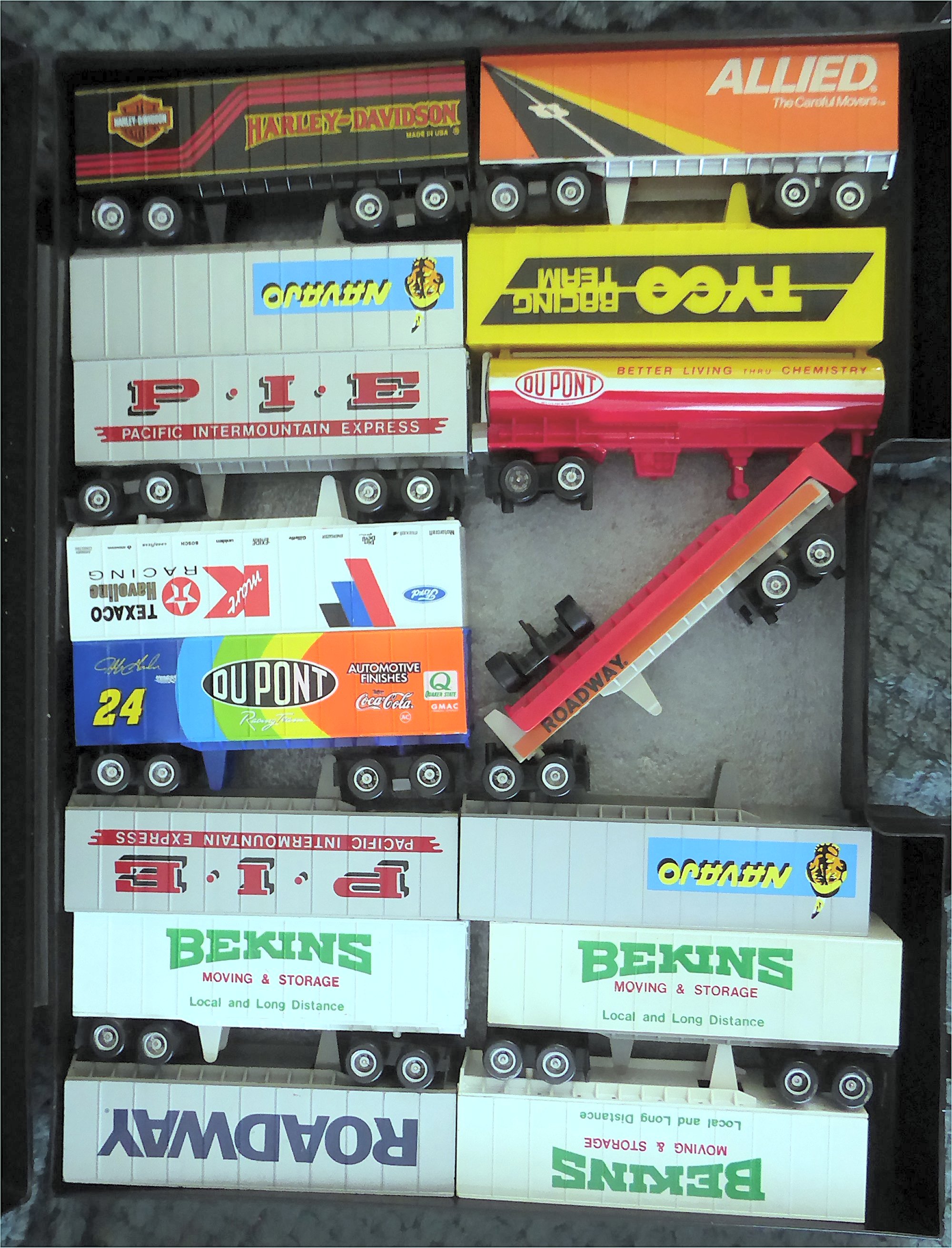 Mostly common Tyco 440X2 'racing' cabs. Mix of US1 and 'racing' trailers. Two top right I've been after for a while.