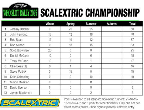 Our third slot rally club night of the year saw 24 drivers compete over four stages with a total of 65 cars. We welcomed Lee for his first taste of racing at the Barn, plus Mark for his first slot rally night. For Jeremy and myself, it was déjà vu all over again as we opened up the Barn and built stages just a few days after a full day of Slot Rally GB action on Saturday.