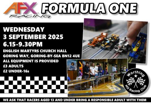 Our autumn schedule at the Barn began with our third AFX Formula One race of the year. These races are supported by AFX HQ in Reno - and we had some quality AFX-branded ballpoint pens to give away to all our racers, plus a couple of AFX baseball caps.