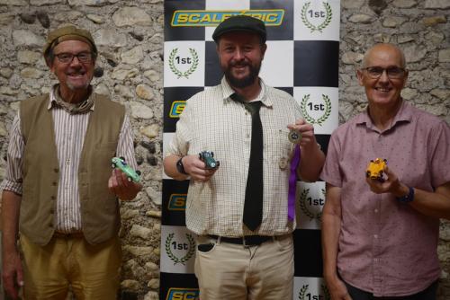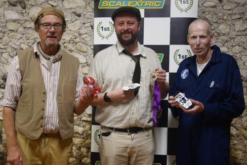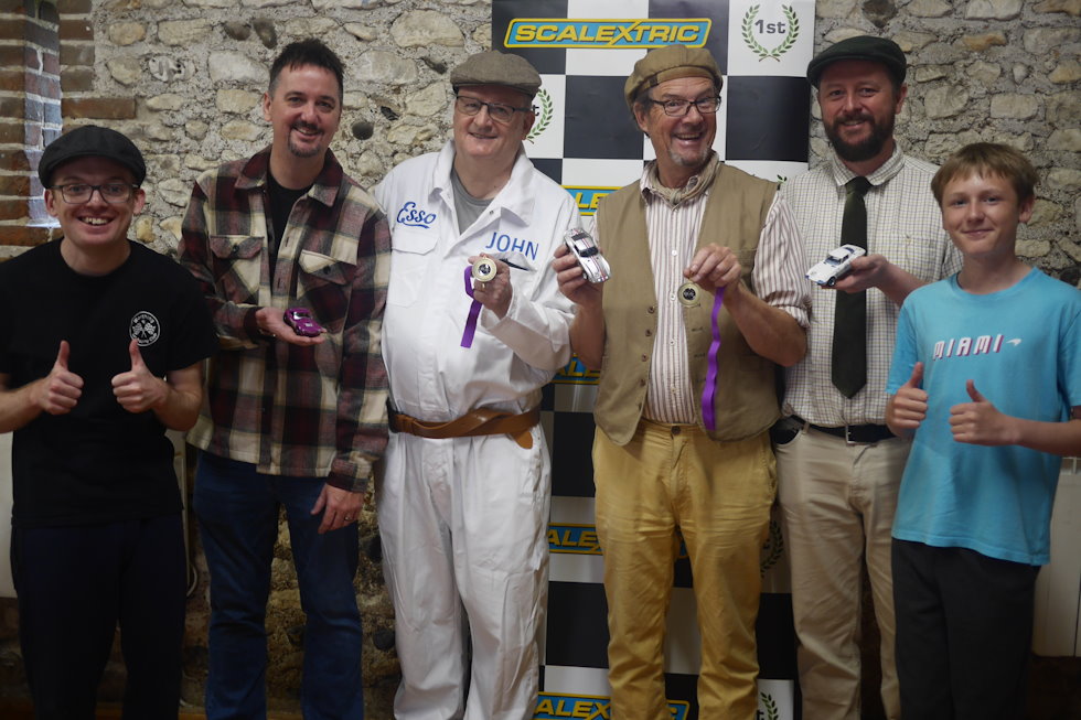 Indeed, with no new kit-builds and only one re-livery on show, the concours d'élégance was for costumes this year - Alex winning the popular vote, ahead of Simon and John. We were missing WHO Revival regulars Pete, Jeremy, Duncan & Ryan (all on holiday), but the attendance was up on last year. Those absentees meant fewer cars, which created some positive discussion and a commitment to work together through the year to plan, build and test cars for the 2026 event. Only Mike, Alex & Dean had cars for all six races, so there is plenty of scope to get more on the grid.