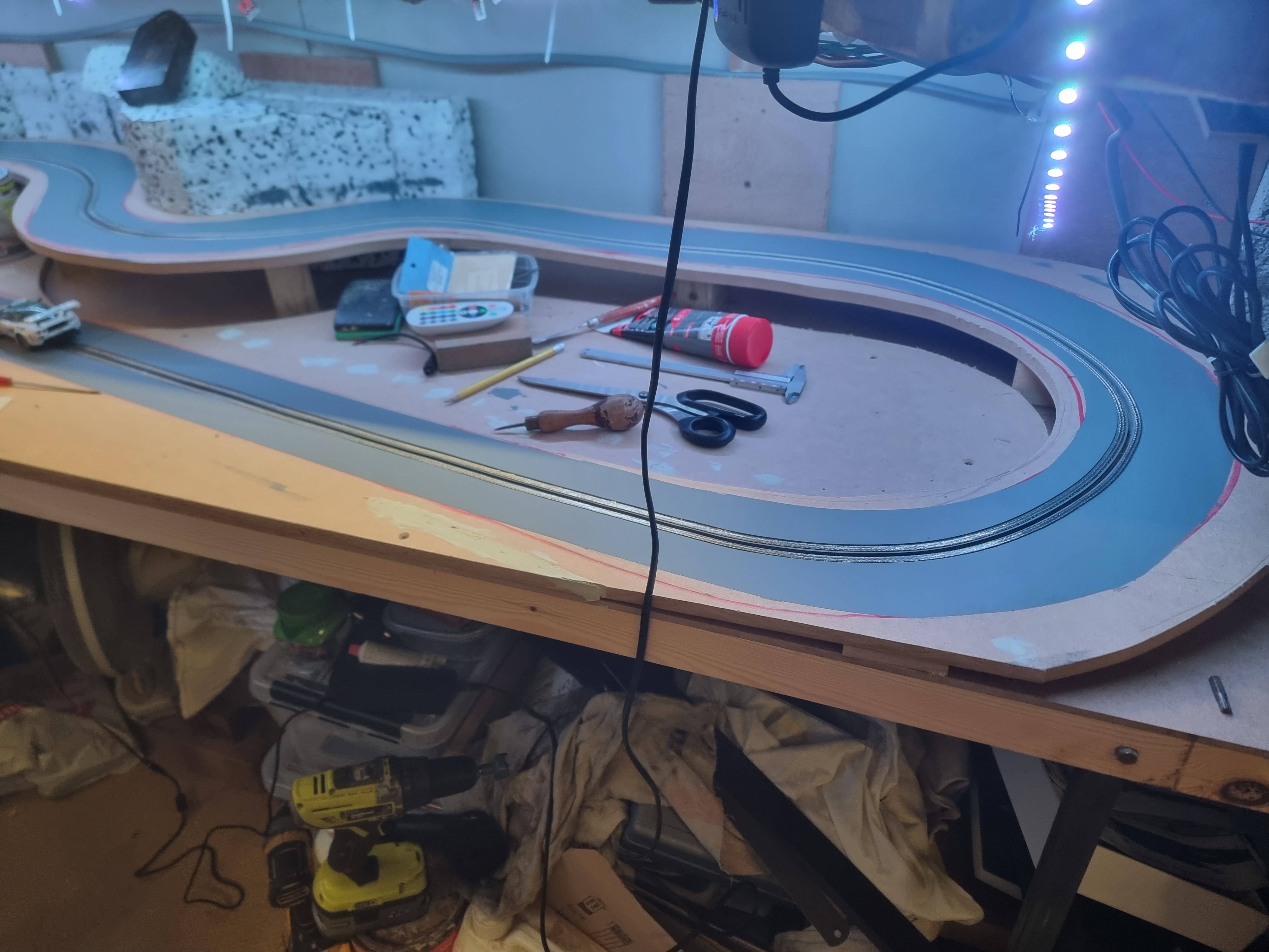 I set the voltage to 10v which seems plenty I ran my cars round which was fun but as I got a little confident I decided barriers need to be made, but all in all a happy chappy.