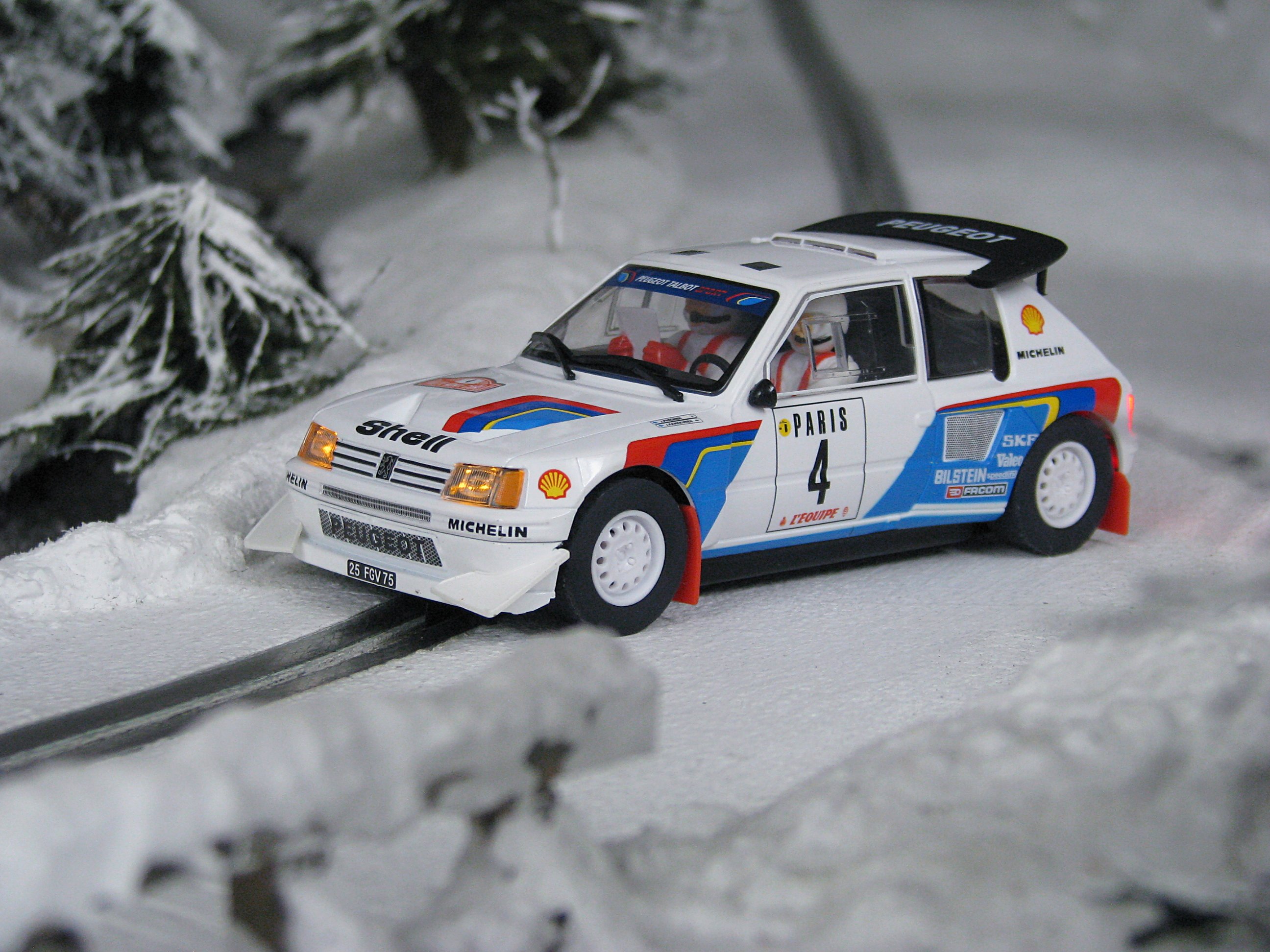 Only when you compare photos and videos of the real car with the slot car Peugeot and measure them, you'll come to the conclusion that Scalextric has correctly scaled down its 205 T16 E2 32 times.