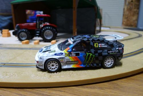 Jupp's Farm was the third stage for Group D and four Ninco cars set the fastest times. Andy's Impreza moved to second on the stage with a 30.66 run, Ollie's similar machine just a second a half behind. Andy's Porsche 911SC slotted in just ahead of Scott's time and Isaac's Lancer was well placed with a 32.25. Isaac also had a great run with his SCX Ken Block Escort Cosworth - its lack of grip not hindering it on this stage and it set an excellent time of 33.92.