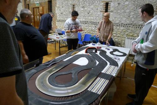 Group A would start their night on this SCX & Scalextric Classic end-to-end layout. The footprint was the same as the summer, but there was more C164 Rough Terrain pieces to catch out drivers taking too much air over the humpback bridge and out of the final corner. Anyone with a super-wide car would also need to be cautious around these fiendish nobbly obstacles...