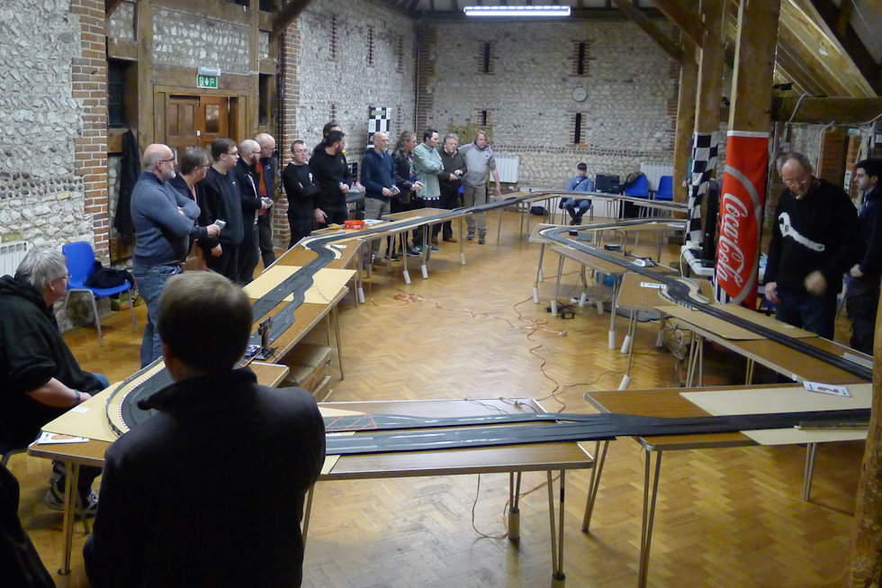 Doors open at 6.30pm for practice and digital driving school. Teams are allocated and we start racing with evenly-matched club cars as near to 7pm as possible. An hour of action is divided into three or four segments of either 15 or 20 minutes, including driver changes every five minutes. Teams swap cars at each break - winners with last place, second with fifth etc. After an hour of racing, total laps are added up and prizes awarded at around 8.30.