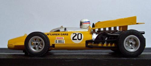 During the following year Exin-Scalextric produced just one F1 slot car. Was it Jackie Stewart’s championship winning Matra? The Lotus 49B perhaps? Err....no. They brought out the McLaren M9A, a car with a racing pedigree of approximately seven minutes! You have to wonder what slot car manufacturers base their production decisions on sometimes. They also released it in the usual colours of the time - red, blue, green and yellow - pity the real car was painted orange.