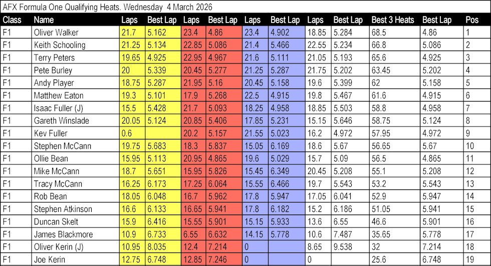 At the half way stage, Terry was on provisional pole ahead of Keith, Oliver, Pete and Andy.