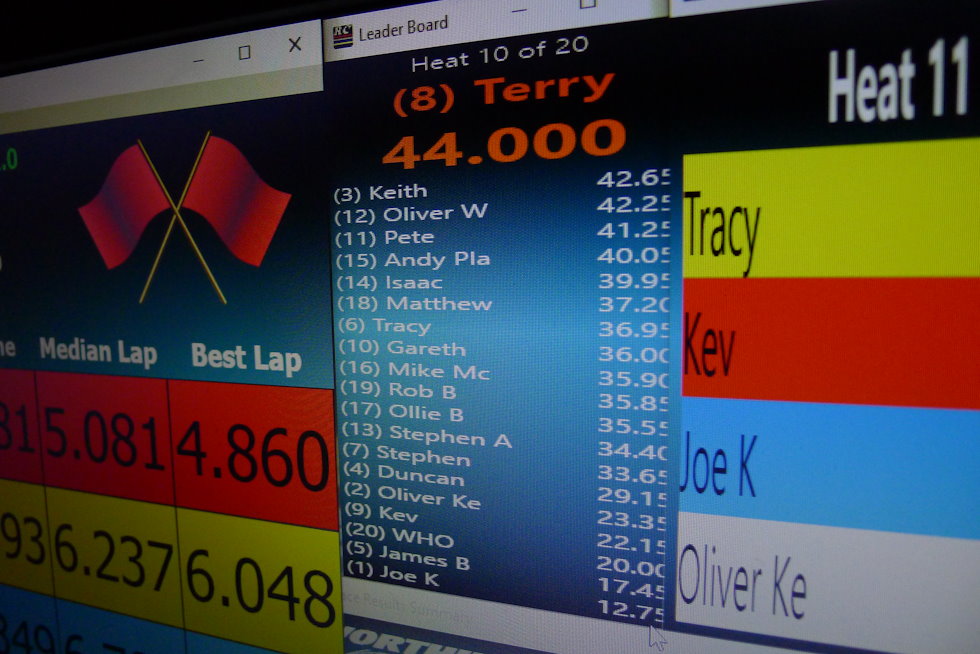 Adam the Elder was off cheering on Brighton at the Amex so Oliver had his dad Joe racing with him tonight. Due to some technical issues with race control and laps not being counted they certainly got their money’s worth as they got to run the first heat 3 times!