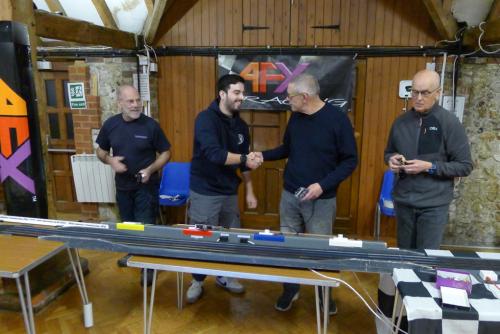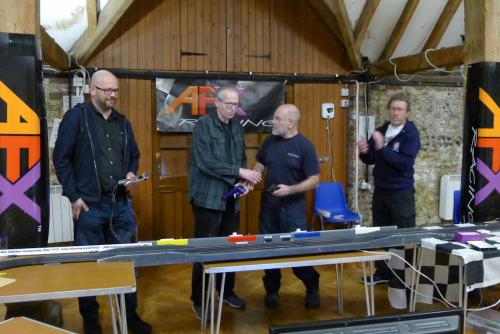 Duncan’s Bulldog was fresh out of the packet and a new car is often difficult to adapt to. After some late advice on tyre height, Duncan comfortably beat James in this two car race. James’ Super G looked to be very ill handling and unpredictable despite some tweaking throughout the evening.