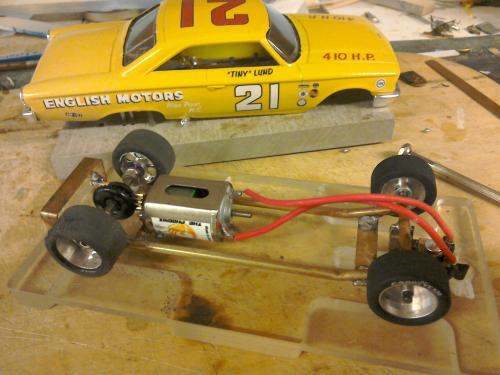 Hi all , I've had this build posted on the SCI forum ,but due to a shoddy built chassis , I remade it ,going inline this time . Still using the Phoenix motor and it is still shredding tyres and as I didn't have any decent in line gears I used scalextric ,which the motor is not so slowly working it's way through the teeth .. Will post more photos when I get the time