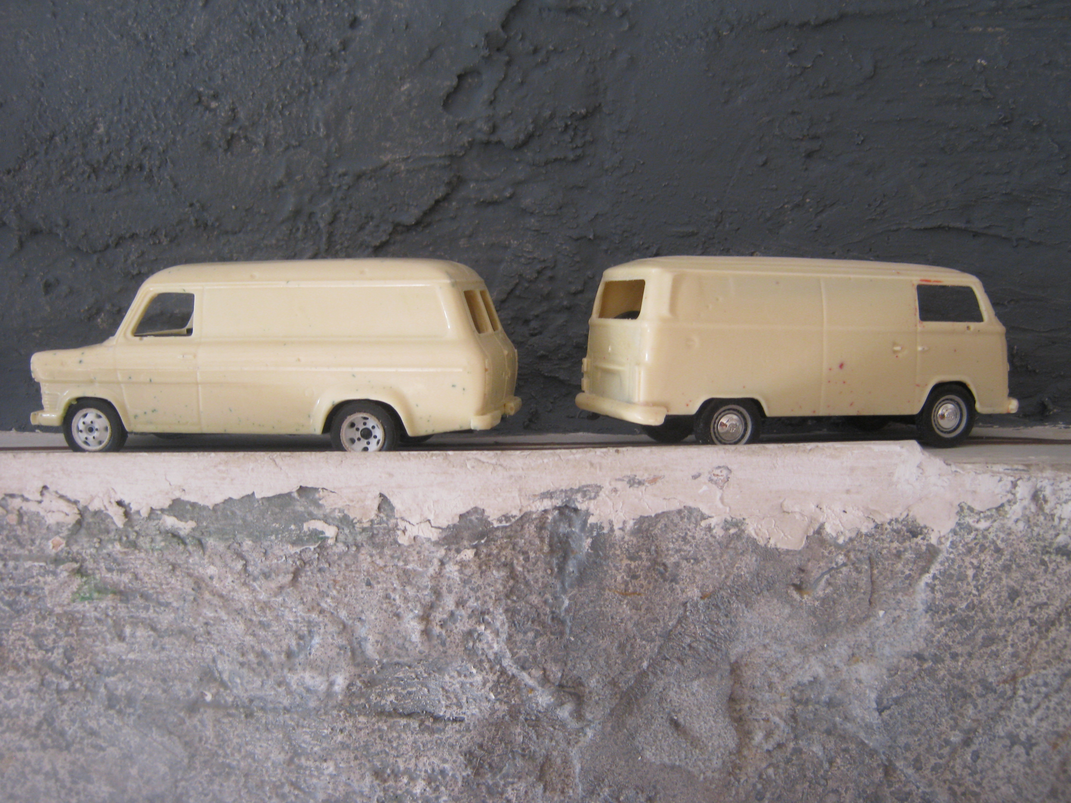 The first 2 shells for my 1/43 service barge and tow car fleet: