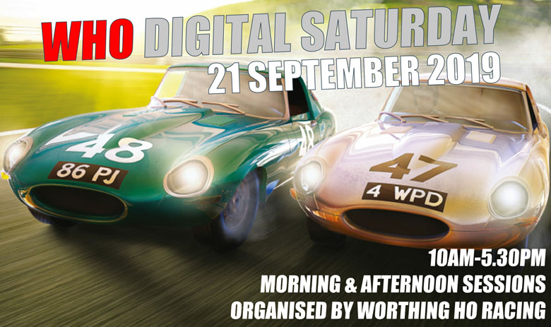 We race on Scalextric Sport track, using the Scalextric Digital Advanced Powerbase, RCS64 race management software, Pit Pro sensors and Truspeed SSD IV wireless controllers. Most of our racing classes use standard Scalextric DPR cars with magnets removed and replacement racing tyres added. We're imaginative with our formats and RCS64 simulations to try an emulate real racing series and have a lot of fun. There is loads more info in the WHO/digital 2019 guide available as a pdf document from our website: