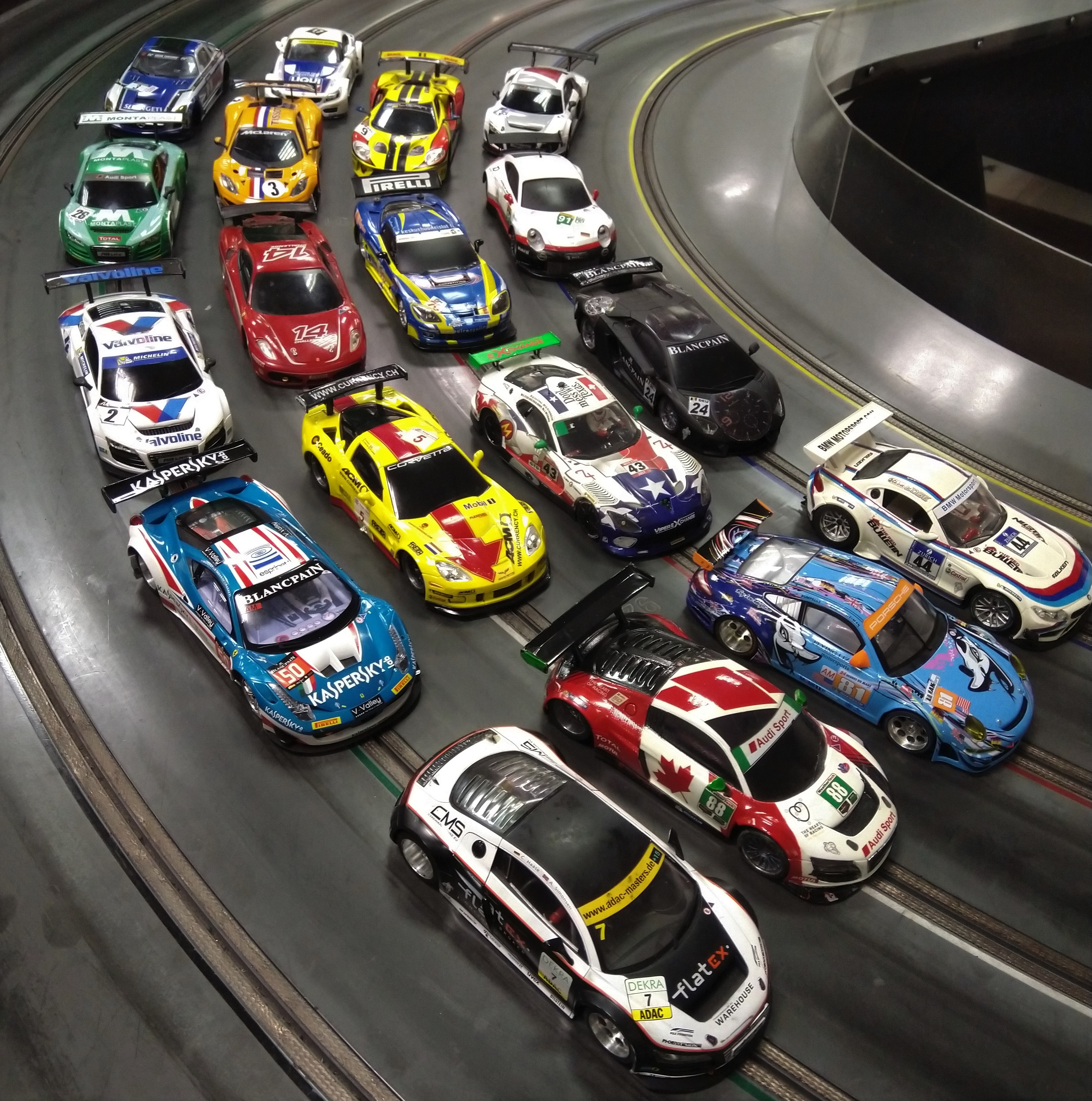Most of these are all painted by myself, decals are drawn and printed by myself, and are all fitted with ZMAchine Pro light kits, and mounted on Plafit 1700 type chassis, which all run to a controlled ruleset.