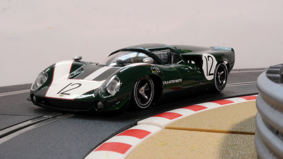 My Lola Aston Martin hasn't been on track yet - although it will be before long. However, I have been lucky enough to borrow Thunderslot Lola T70 MkIIIs to race at both East Worthing (wood) and Nascot Wood (Ninco) this year. They are sensational cars to race. At East Worthing, I was over half a second a lap quicker than my NSR Ford MkIV, mostly down to the confidence I had through the faster corners, plus the balance of the chassis and response of the motor through the more technical stuff. The Nascot Wood track is bigger and more flowing than East Worthing - it was also the first time I'd raced there. However, the T70 was a perfect car to learn the track - predictable, forgiving and fast. Through the evening my times went steadily down, even on the trickier lanes, and I never scared myself - or the marshals - once. A car that gives me such an enjoyable evening on a brand new track - and running on the pace of some of the locals in the process - can't be bad!